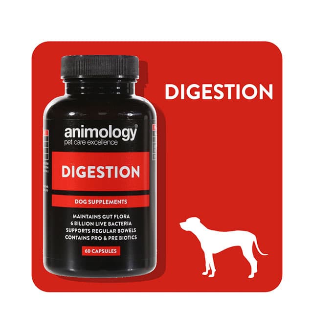 Digestion supplements are suitable for dogs from 2 months old. Each supplement comes in an easy-to-use capsule which can be given to you dog whole, or pulled apart, emptied and mixed into your dog’s food or water. Contains 60 capsules.