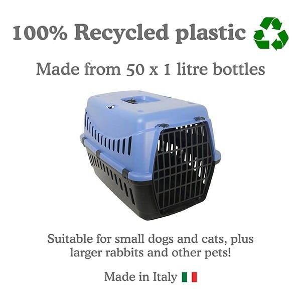 Medium Eco Line plastic pet carier is made from the equivalent of 50 x 1L bottles. The door can be opened from the left or the right and the carriers are easy to clean and store.